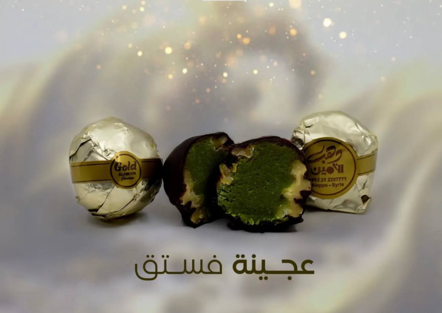 عجينة الفستق بداخلها هريسة اللوز ومفطسة بالشوكولا الذيذة عالية الجودة
