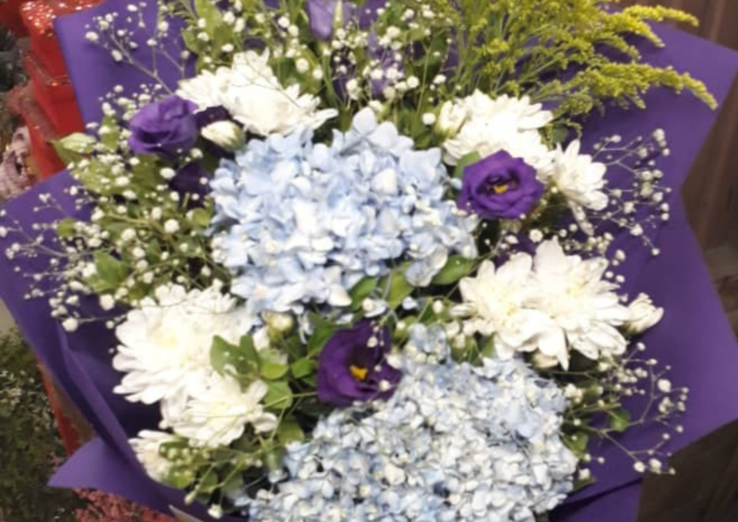 باقة من الورد الطبيعي البنفسجي وتدرجاته مع لون الابيض تفيد في تقديمها كهدية من اجل مناسبات