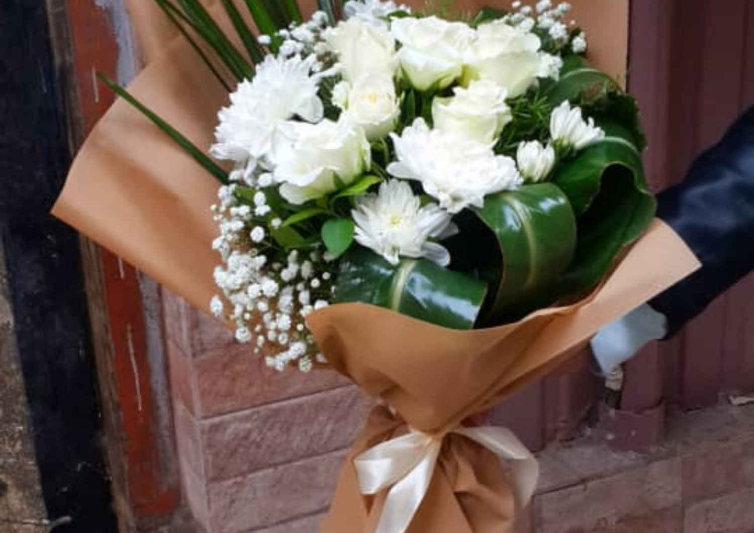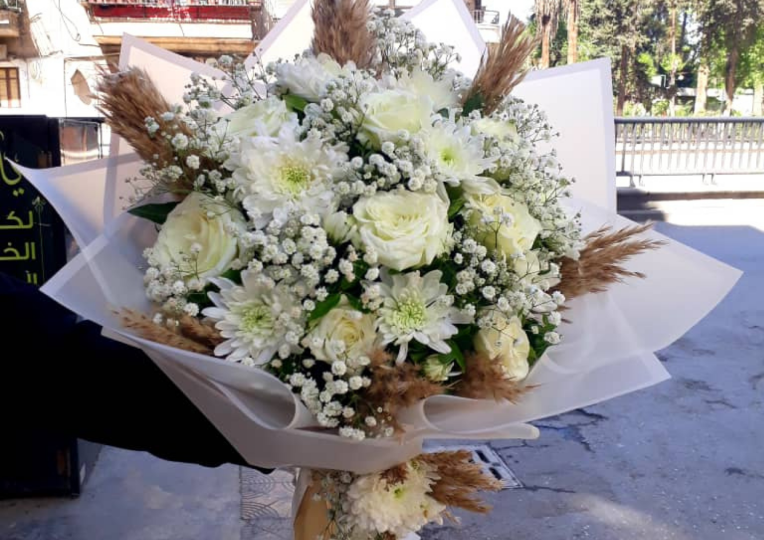 باقة ورود بيضاء مزينة بالثلج الابيض