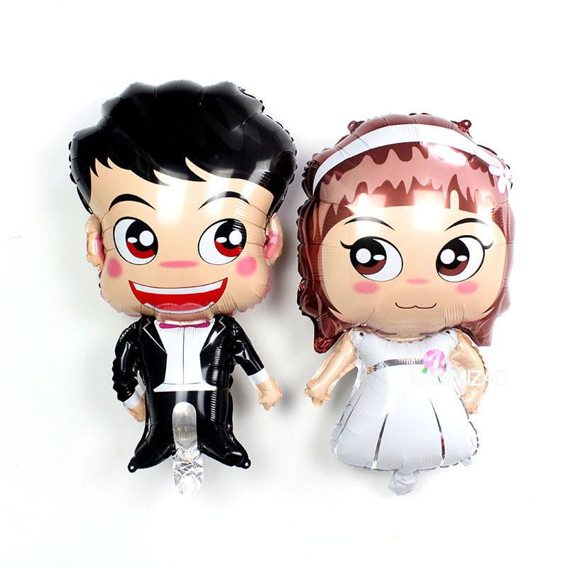 بالونات الهيليوم بتصميملطيف لمجسم العروس والعريس بحجم مناسب مصنوعة من مواد فاخرة بألوان زاهية قابلة للنفخ بالهواء أو الهيليوم