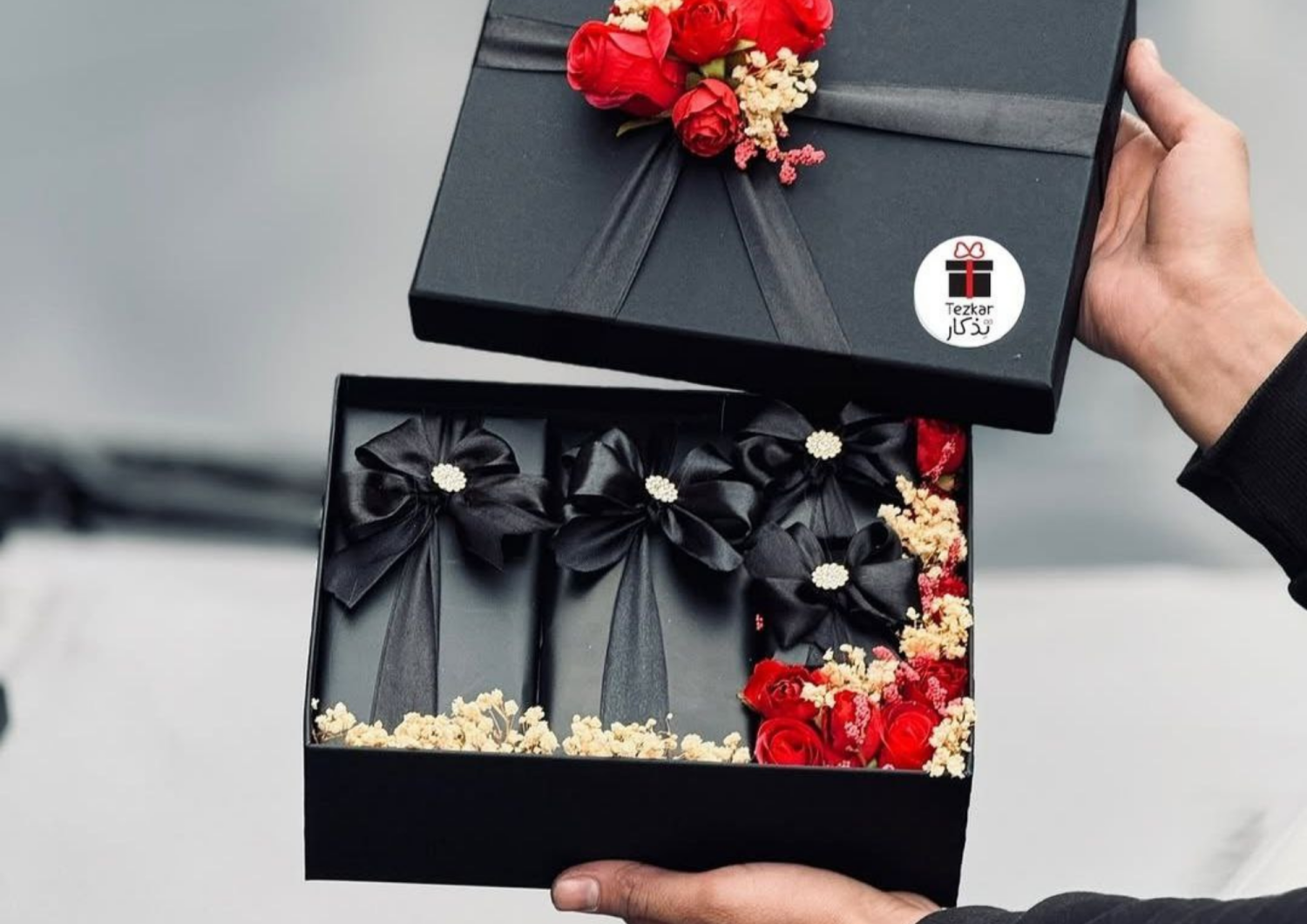 بوكس هدايا فاخر يوجد بداخله ورود اصطناعية عالية الجودة ودقة مع غلاف للهدايا وريبان يتوفر عدة الوان نها البيج والزهري والاسود