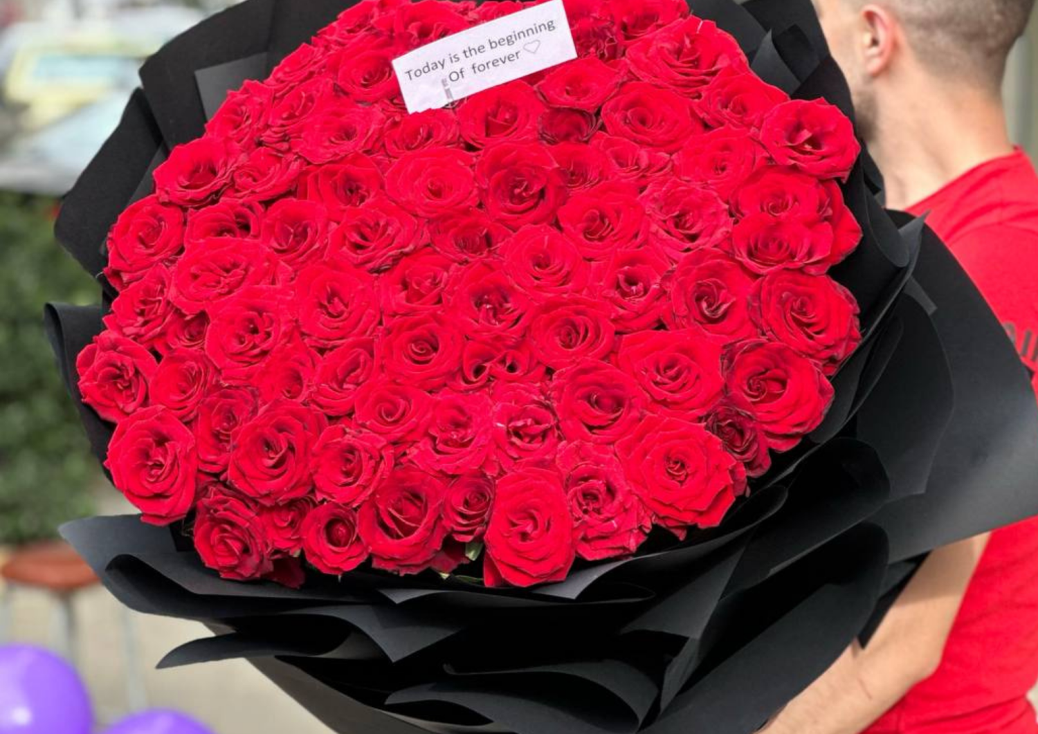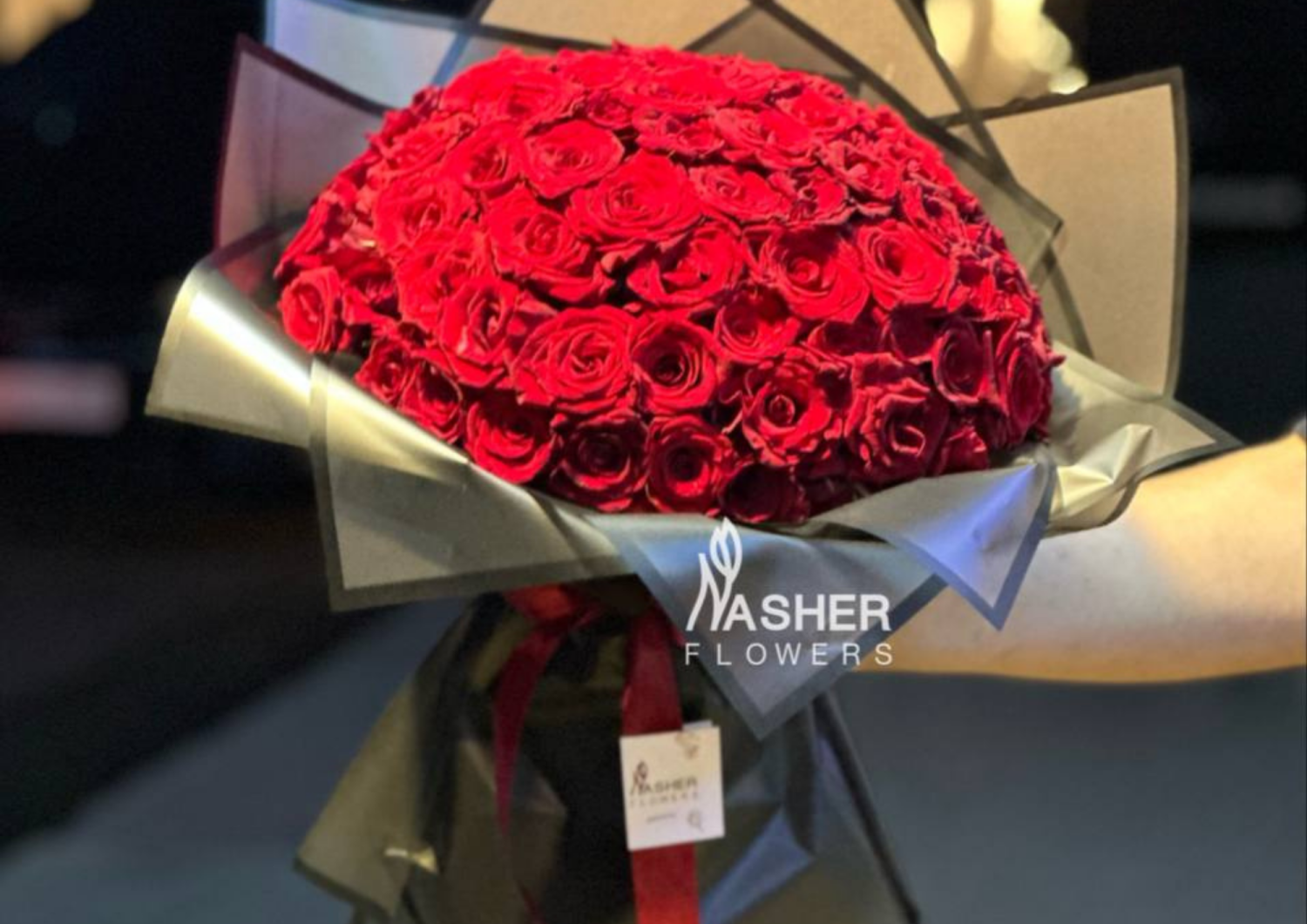 بوكيه ورد احمر من ورد احمر طبيعي عالي الجودة