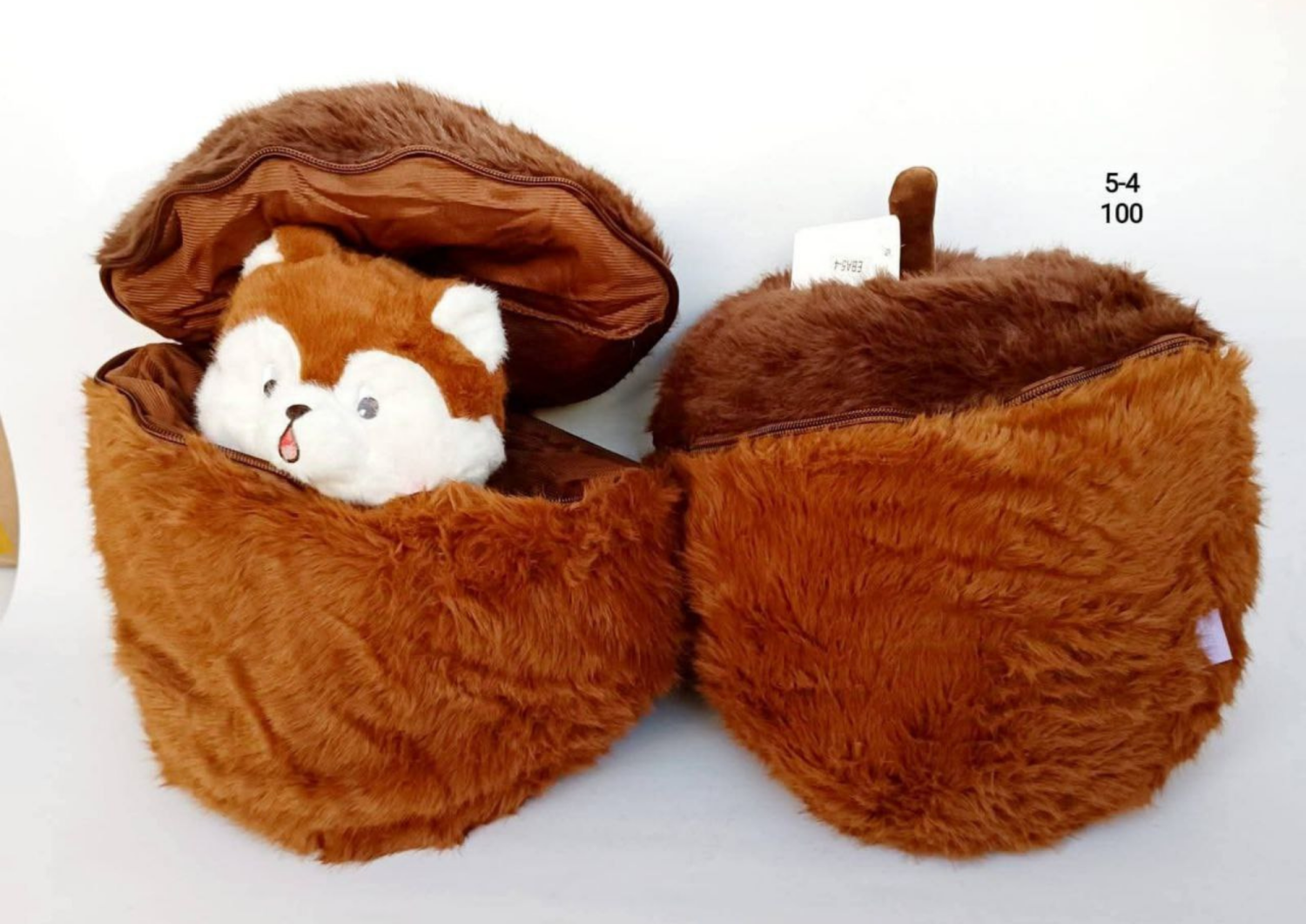 دمية السنجاب اللطيفة داخل بيت من بندق لون بني وعسلي