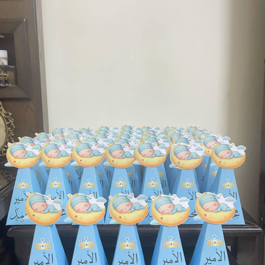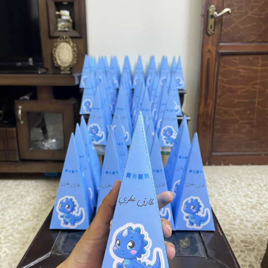 علبة الضيافة الهرمية التي تقدم في مناسبات الخاصة مع اخيان لون وشخصية الكرتونية