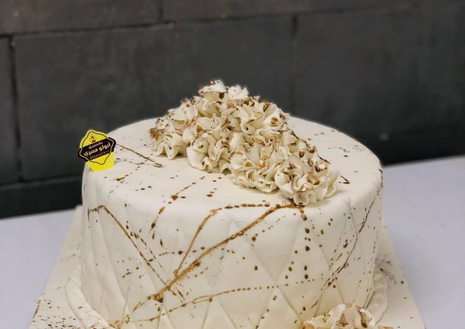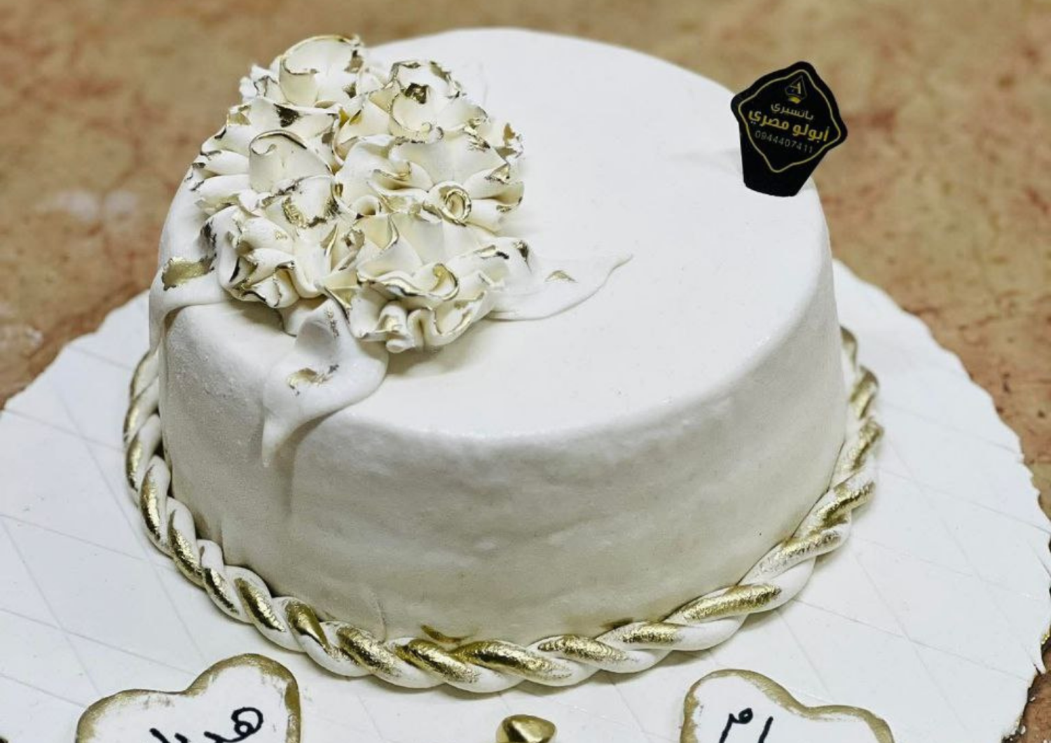 كاتو ابيض مزين بعجينة اللوز ولون الذهبي الامع