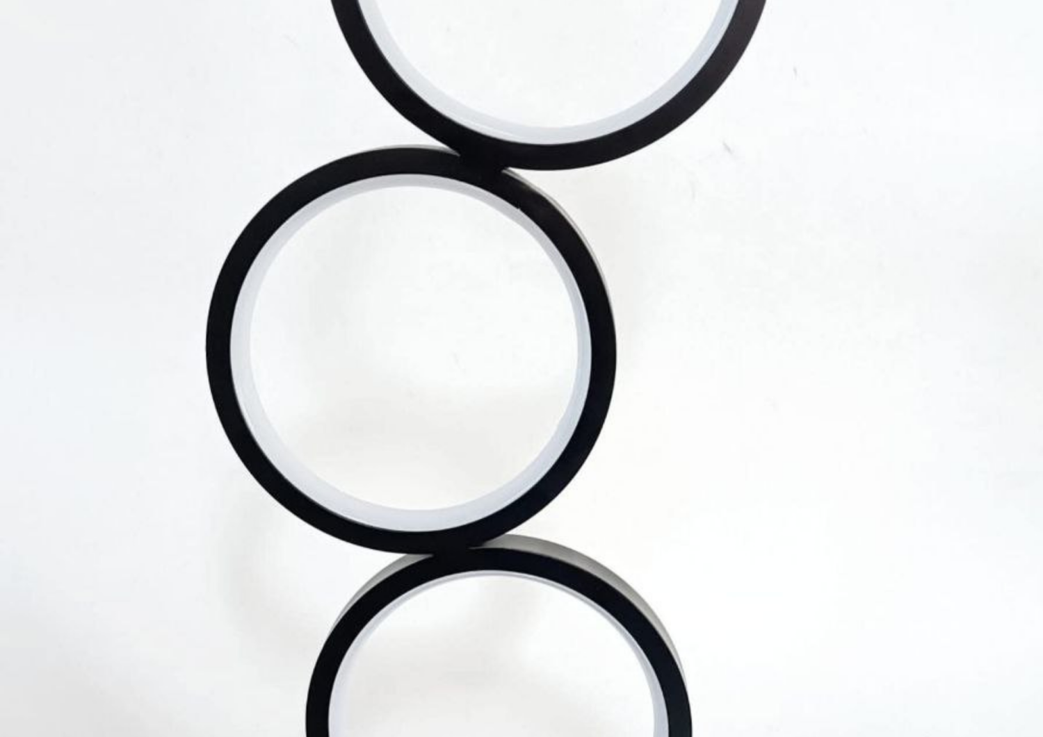 لمبدير الاضاءة على شكل دوائر مفرغة سوداء مفرغة محيط بها لدات اضاءة متنوعة مع قاعدة دائرية