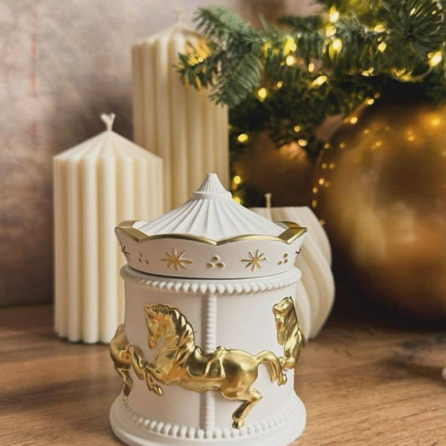 مجموعة من المباخر المزخرفة لزوق رفيع عليها شكل حصان مزينة بورق الدهب يعطي لمعة