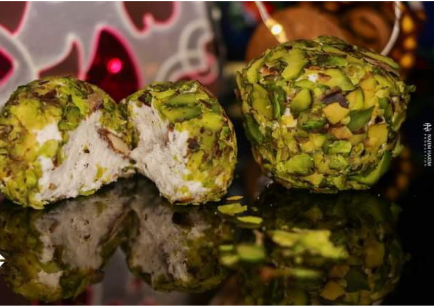 قطع المن السلوى المغطى بالفستق الحلبي ومحشي بالمكسرات
