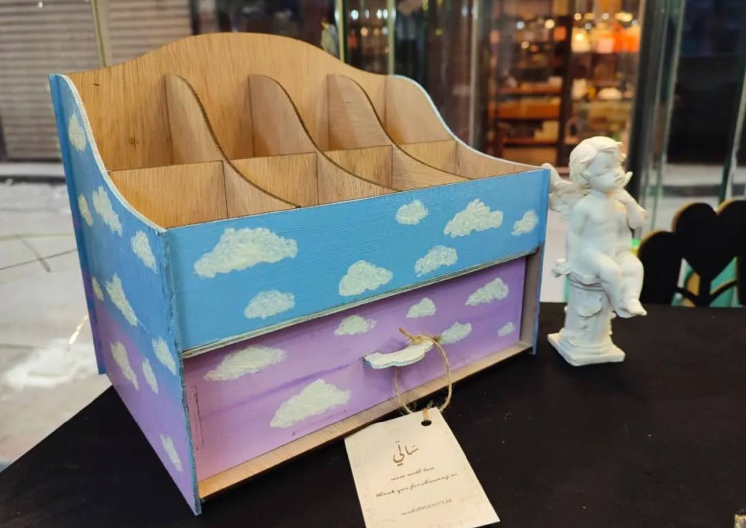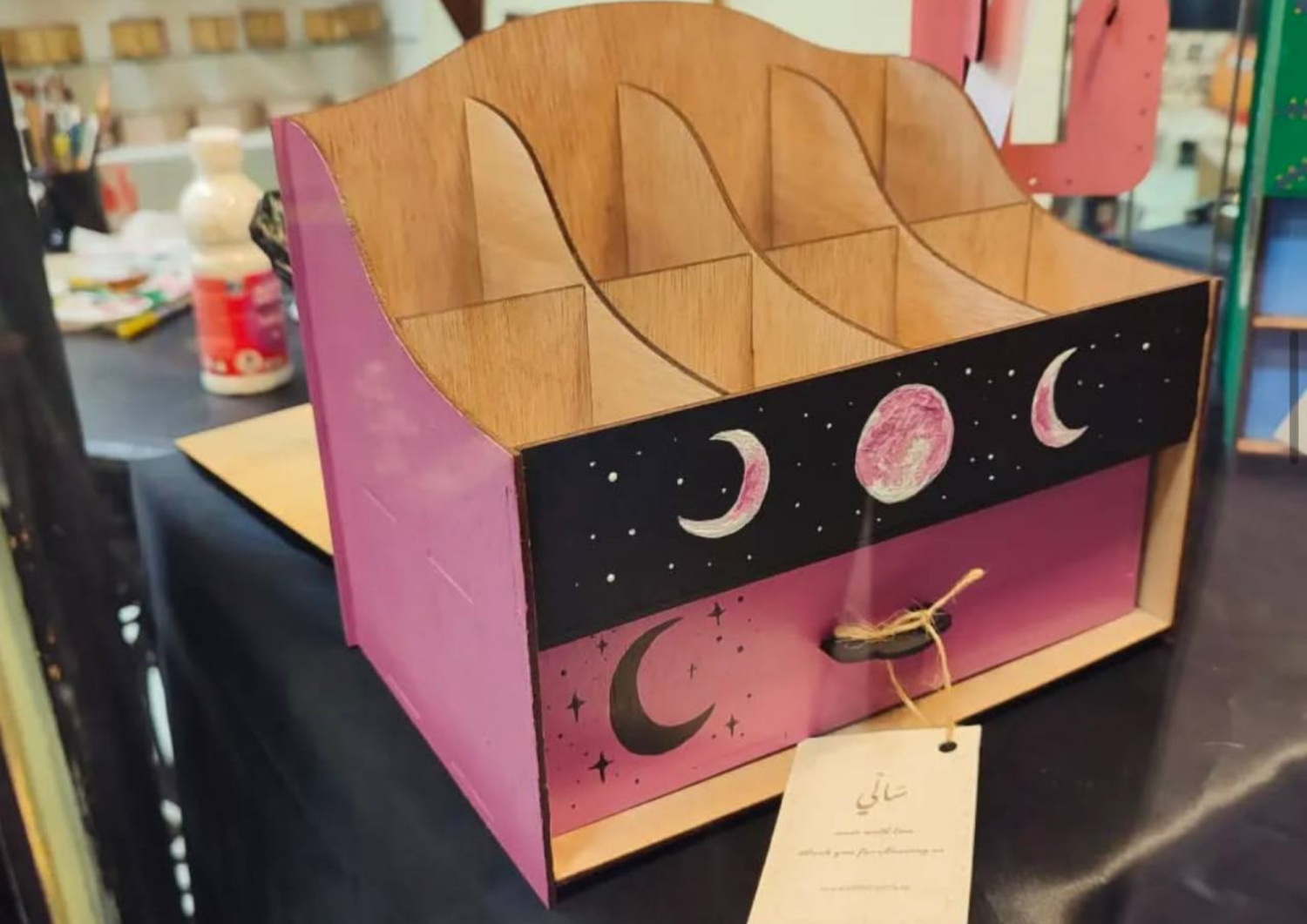 منظمة الاشياء المدرسية يتوفر اللونين الازرق والزهري يمكن مزينة بالوان الاكريلك ورسومات الفضاء الرائع