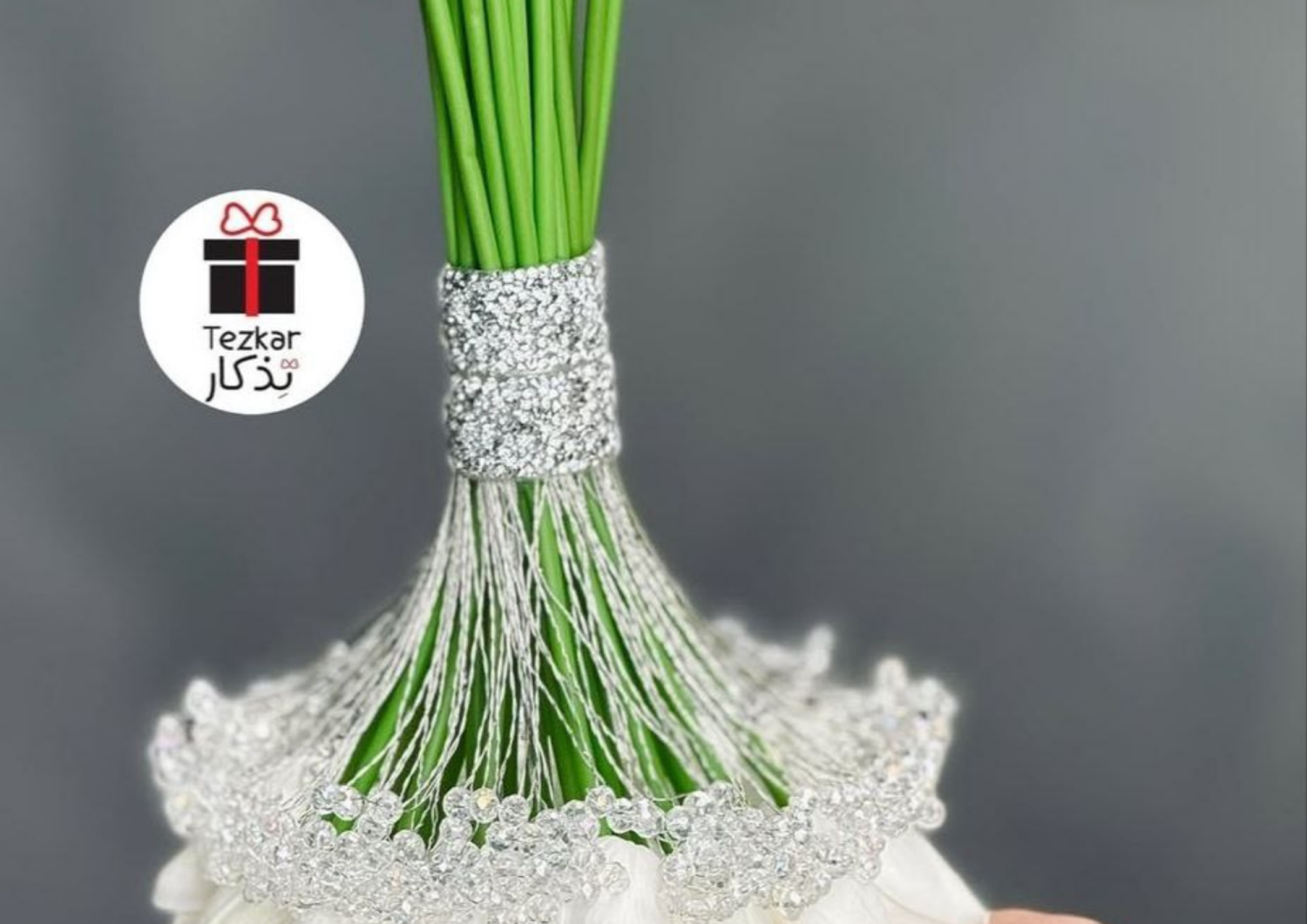 باقة زهر التوليب الفاخر مسكة عروس محاطة بالستراسات
