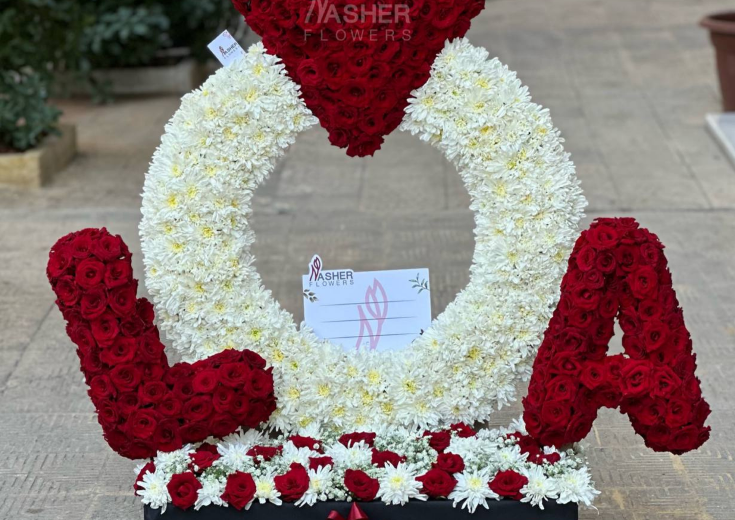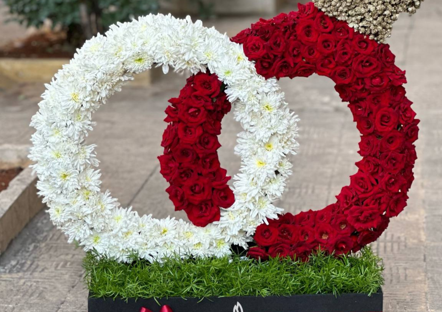 دوائر من الورد الاحمر والابيض كبيرة الحجم ومتوسطة الحجم