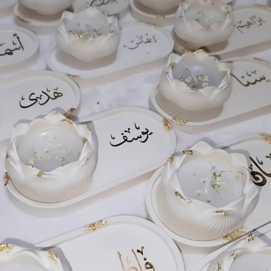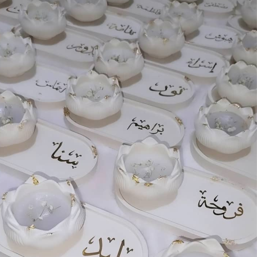 تتوفر بلون الابيض ويمكن وضع اسمك عليها حسب الطلب يكون شكل الاسم مزخرف ومزين بطريقة راقية وجميلة