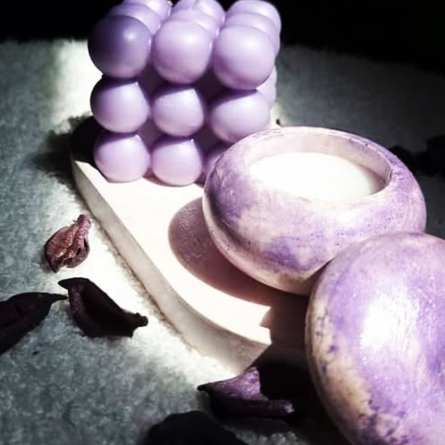 شموع الافندر على شكل مربع مطبق عليه عدة دوائر لتشكل المربع المميز