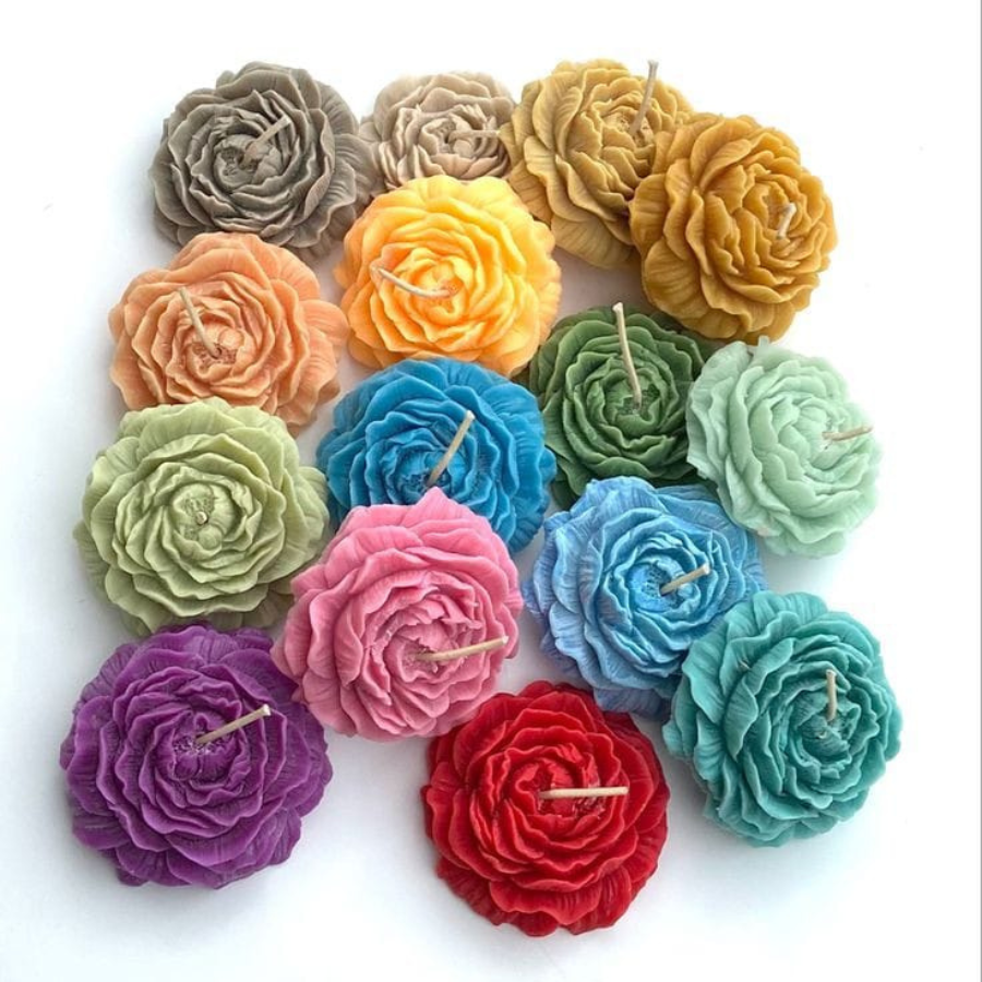 مجموعة شاملة من شموع الزهور مع توفر عدة الوان منخا الزهري والازرق الابيض والاصفر بنفسجي اخضر بني زهري وتدرجاتهم