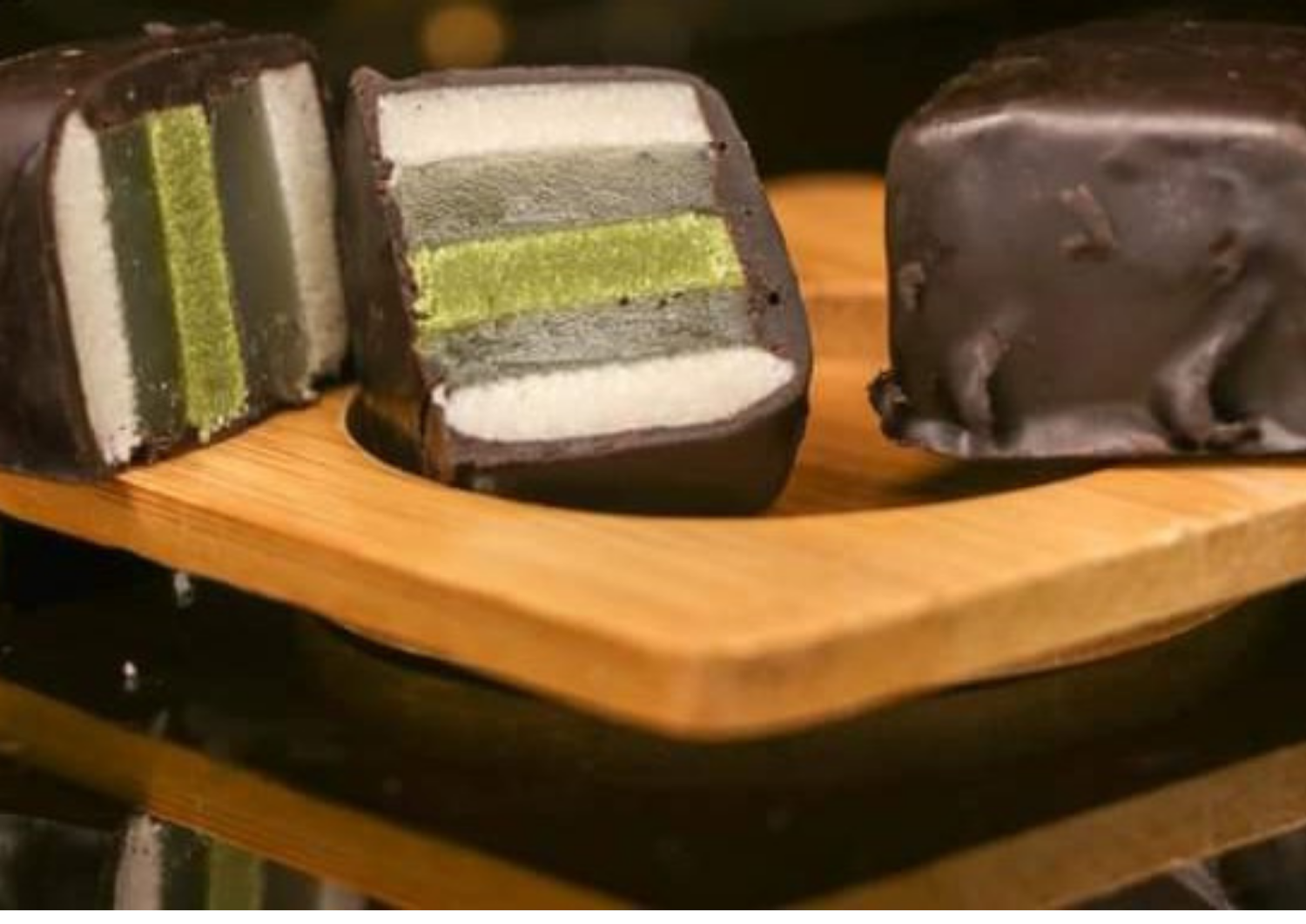 قطعة من شوكولا محشية بطبقات متعددة من الراحة عالية الجودة وهريسة اللوز
