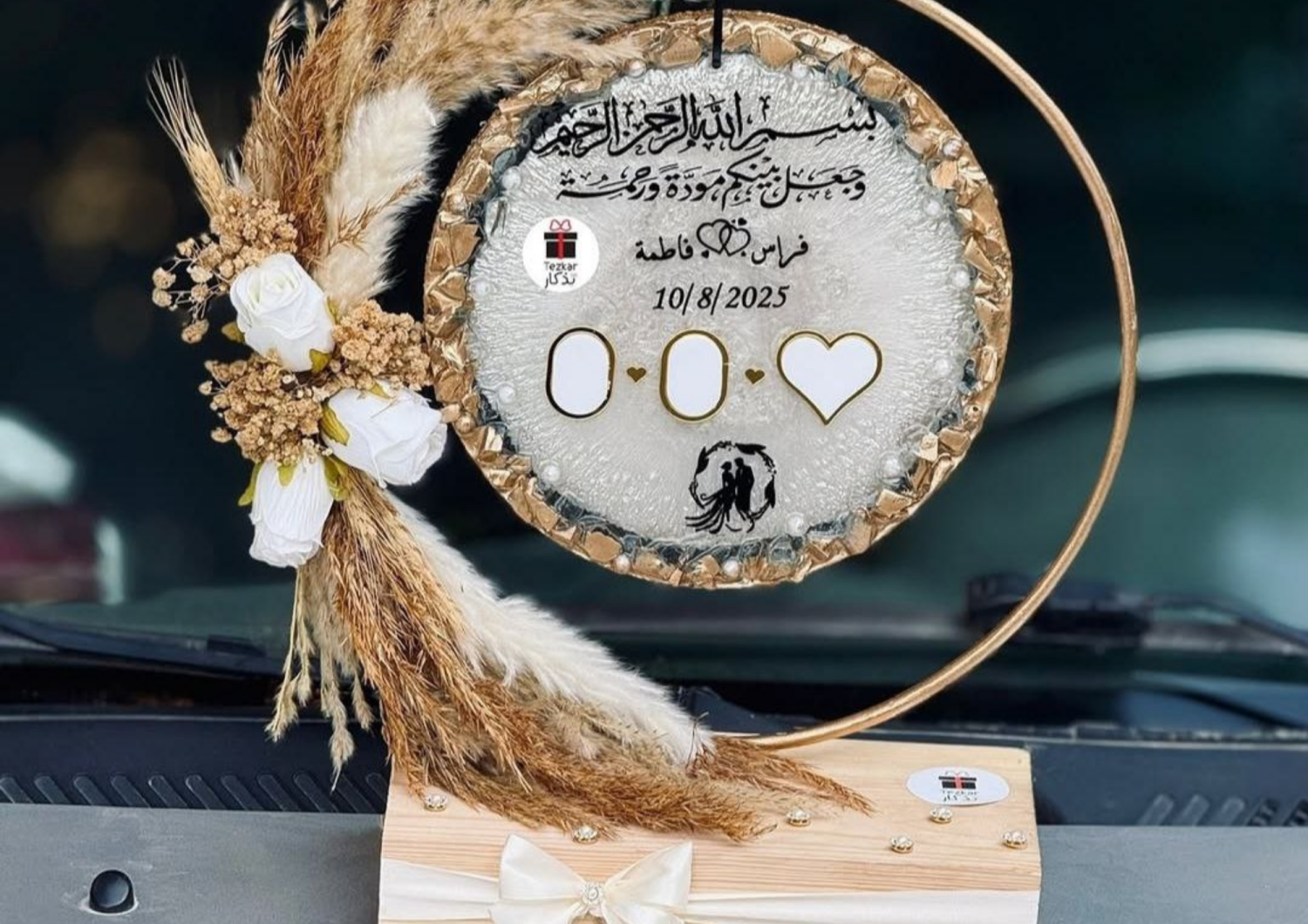 ستاند البصمات للمتزوجين من بلون وحديد على شكل دائرة مع اضافة ازهار