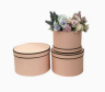 طقم العلب الأسطوانية بثلاث قياسات مختلفة (صغير - متوسط - كبير) مصنوعة من كرتون متين عالي الجودة بلون موحد مع لمسة ورد بسيطة تضيف طابع راقي مناسبة لتغليف وتنسيق الهدايا