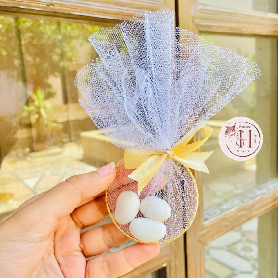 توزيعات ملبس قطع حسب الطلب مع القماش المخرم بجودة عالية اضافة الى الريبان مع لمعة
